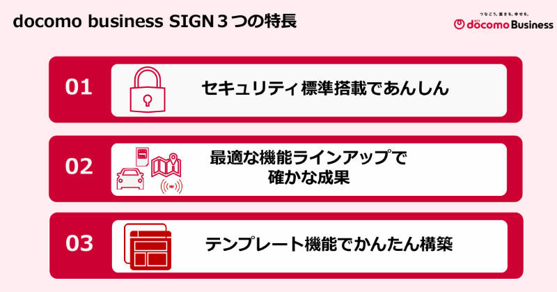 小嶺は『docomo business SIGN』の3つの特長を解説しました。