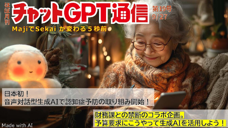 その1つが、庁内の電子掲示板で発行している「チャットGPT通信」です。特に40〜50代の管理職層に響くように、「ファミコン通信」の表紙をオマージュしたデザインにしています。生成AIの攻略本と位置づけ、現在26号まで継続して発行してきています。
