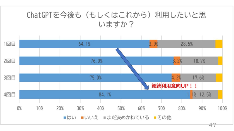 「生成AIは使ってもらえれば効果が出る」という前提に立っていたので、いかに「イベント化して継続利用を促すか」が重要でした。
