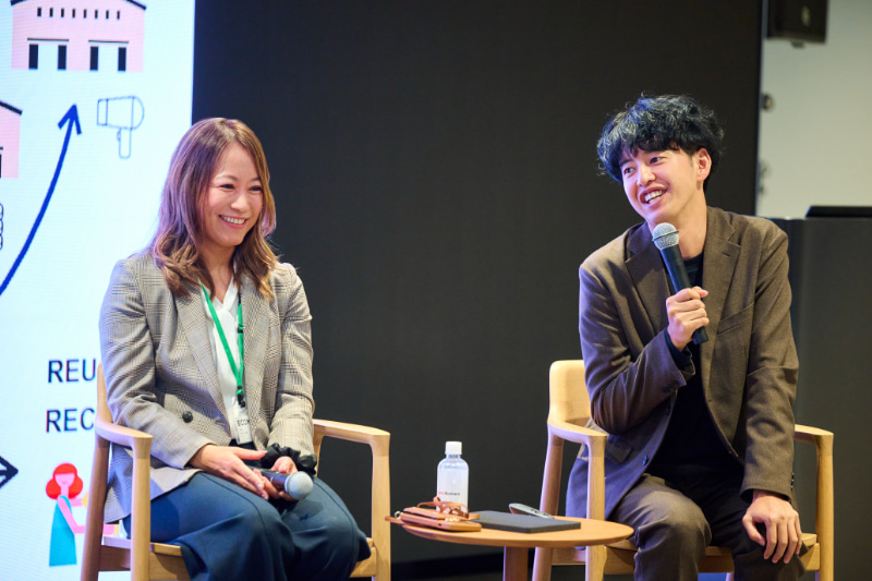 続くトークセッションでは、ソーシャルビジネス賞の「CHOCOPEN」と、サーキュラーエコノミー賞の「宅配PASSTO」の関係者が、社会実装のリアルと、共創をビジネスとして成立させるための視点を語りました。