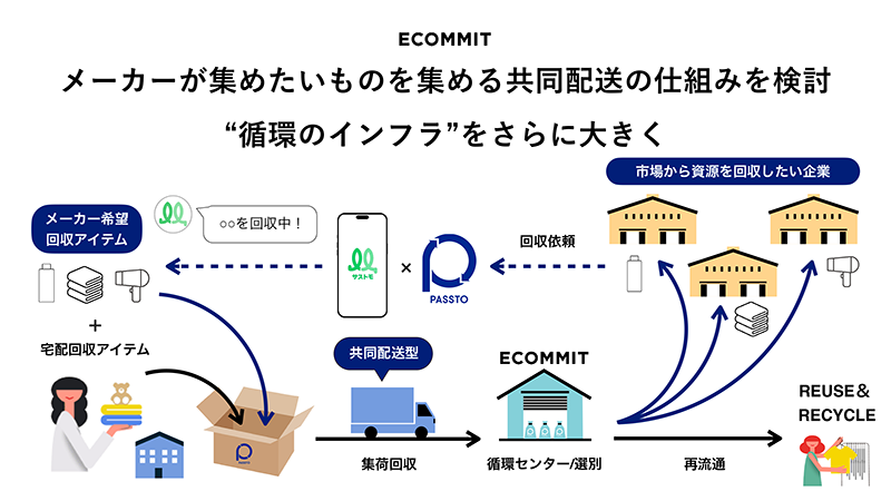 「今、多くのメーカーは、生産者責任として、使い終わった自分たちの製品や梱包資材を回収することが求められています。そこで、メーカーの皆さまが集めたいものを社会から集めていく仕組みをつくりたい。ECOMMITのオペレーション力と、サストモの発信力、メーカーの熱量を掛け合わせて、資源循環の市場を拡大させていきます」