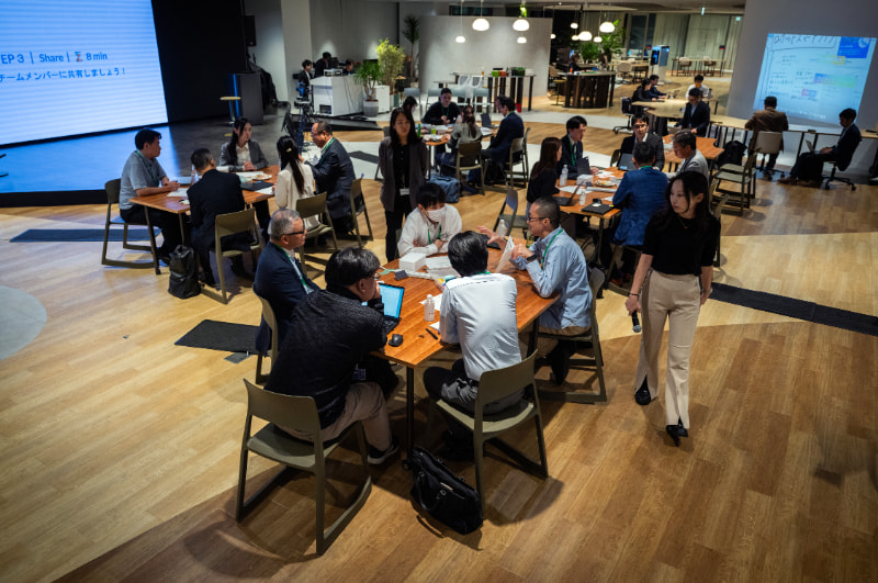 イベントの終盤では、参加者が4つのグループに分かれてワークショップを実施。NTTドコモビジネスのメンバーも加わり、コンタクトセンター運営の課題や生成AI導入時の悩みについて活発な意見交換が行われました。