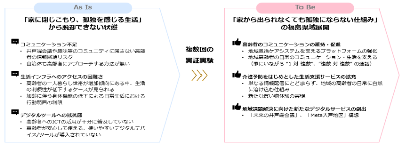 NTTドコモビジネス 増田哲哉(以下、増田):今回の実証実験は、先ほど東瀬さんが述べられた「家から出られなくても孤独にならない仕組み」の構築を目指したものです。ただ、今回は仕組みづくりのための仮説検証をしっかり行うことが第一。そのためにも、現地で実証実験にご協力いただく皆さまから意見を偏りなく集め、整理することが重要だと考えています。