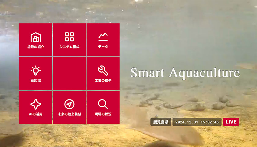 鹿児島県の陸上養殖施設の映像・データをリアルタイムに伝送・可視化・分析しています。